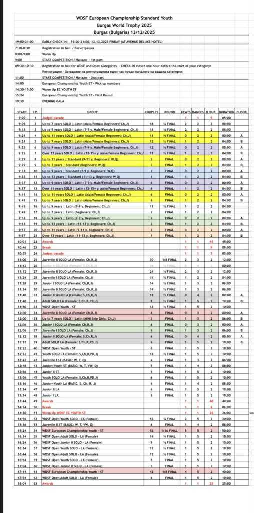- WDSF Youth Open ST (The final will end before 1st round of European Championship)